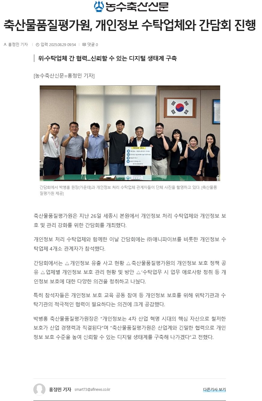 언론보도 축산물품질평가원, 개인정보 수탁업체와 간담회 진행